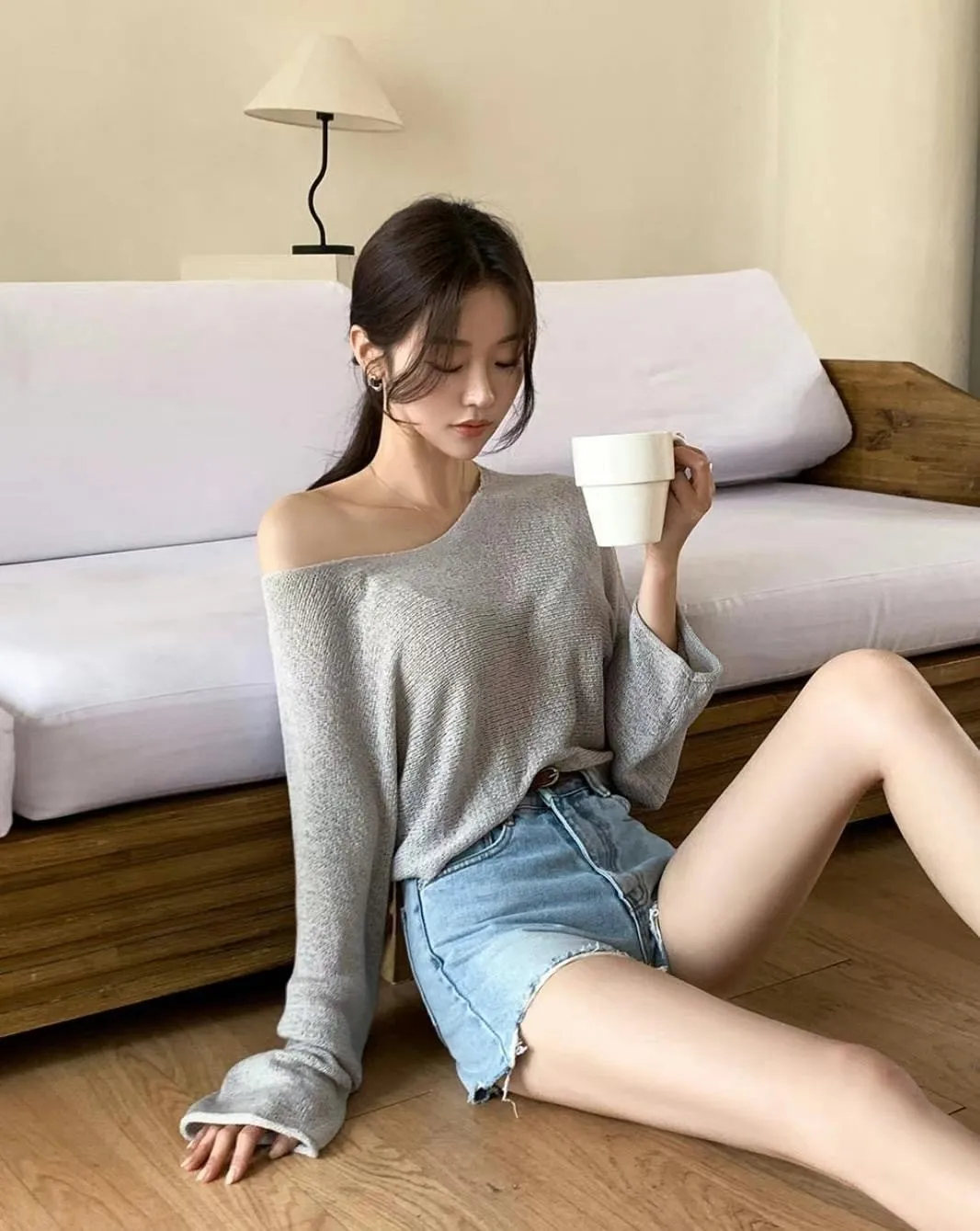💙𝑩𝒍𝒖𝒆.𝒌𝒓 🇰🇷正韓 寬領百搭針織罩衫