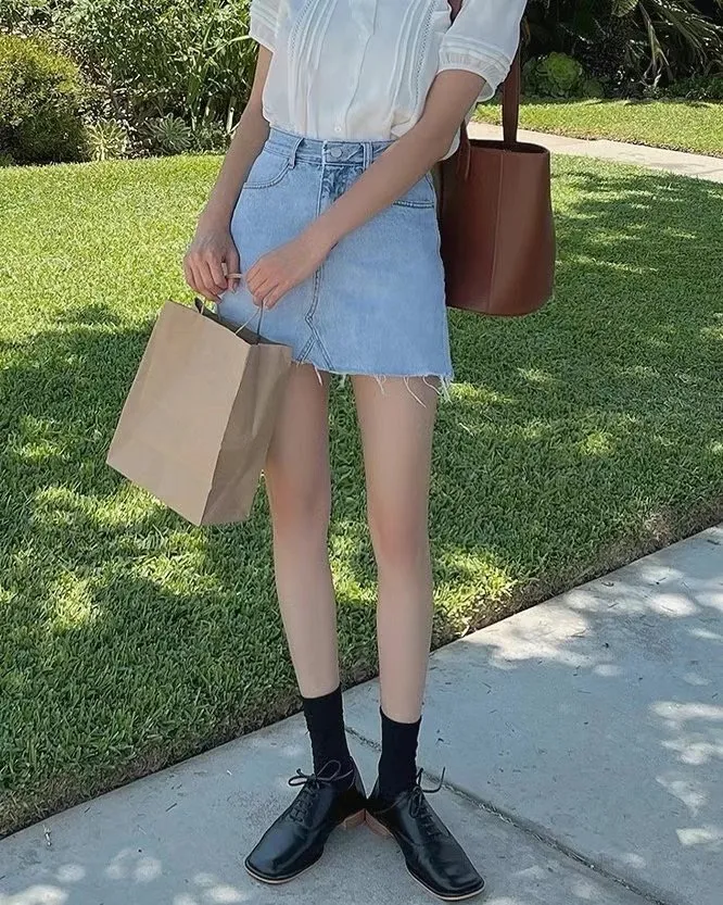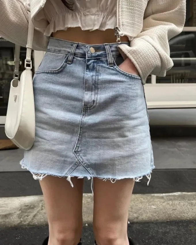 💙𝑩𝒍𝒖𝒆.𝒌𝒓 🇰🇷正韓 淺藍基本款牛仔短裙 褲裙