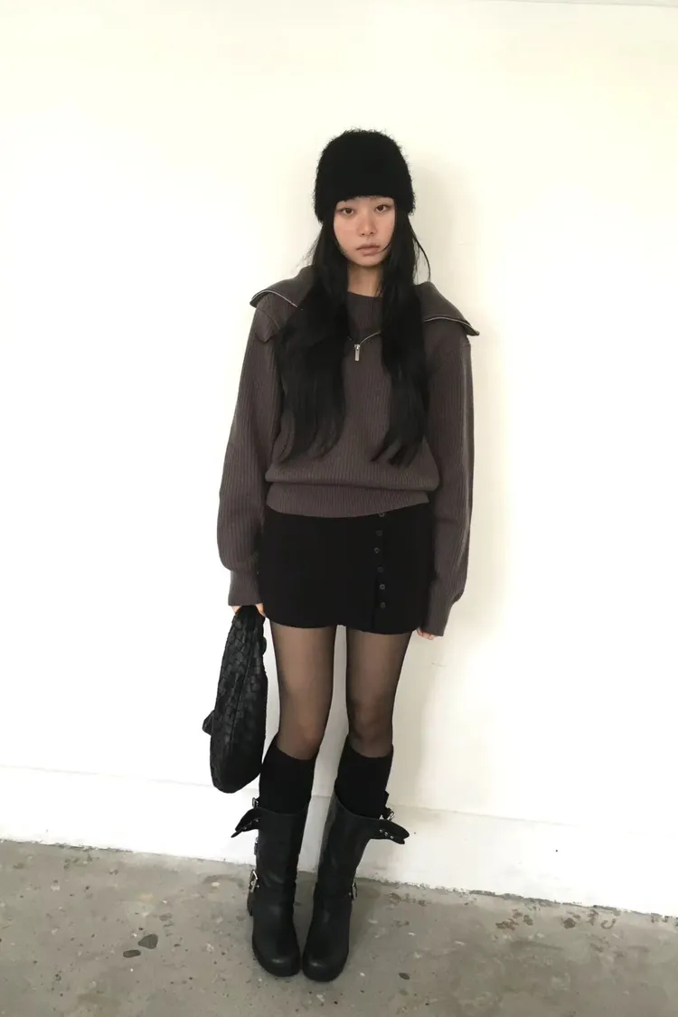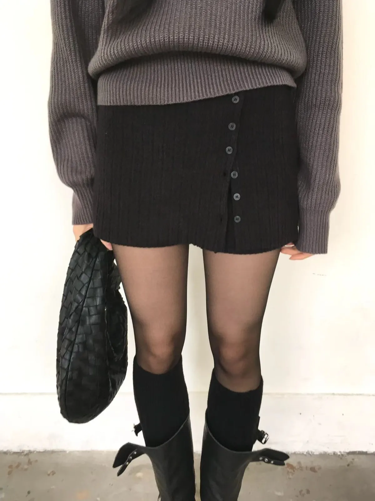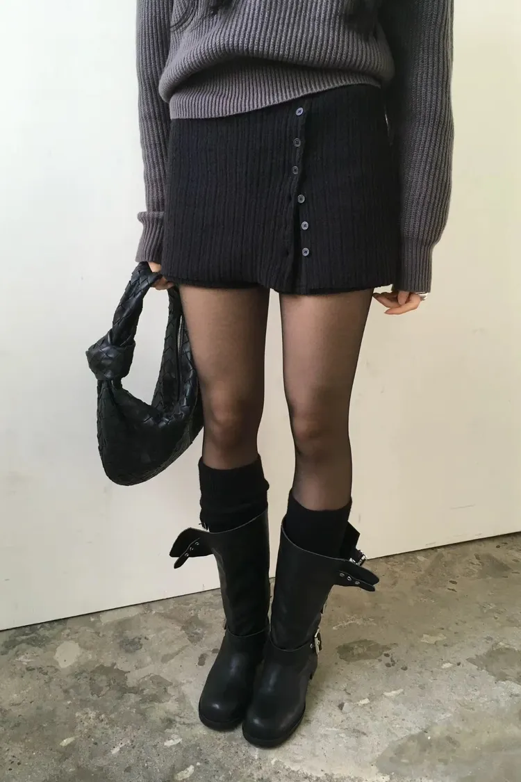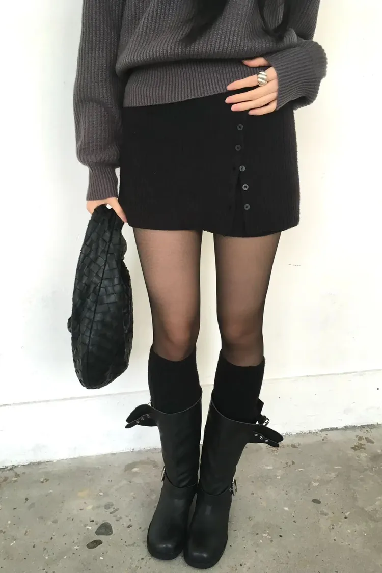 💙𝑩𝒍𝒖𝒆.𝒌𝒓 🇰🇷正韓 坑條側排釦裙簾短裙