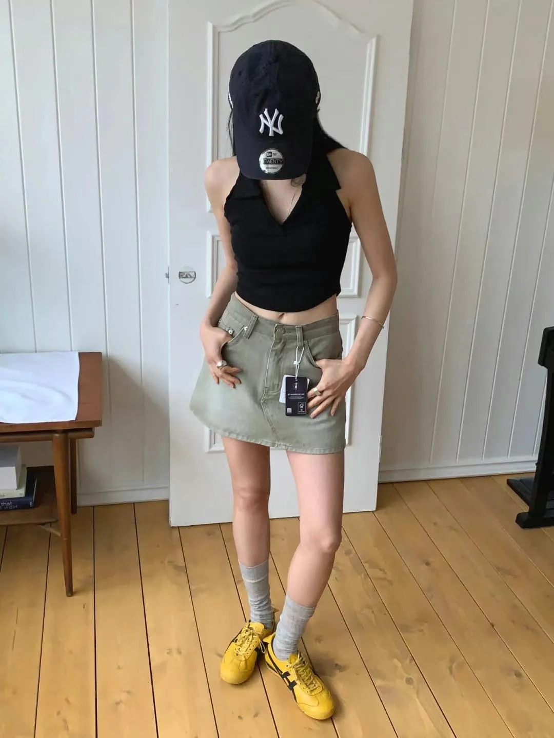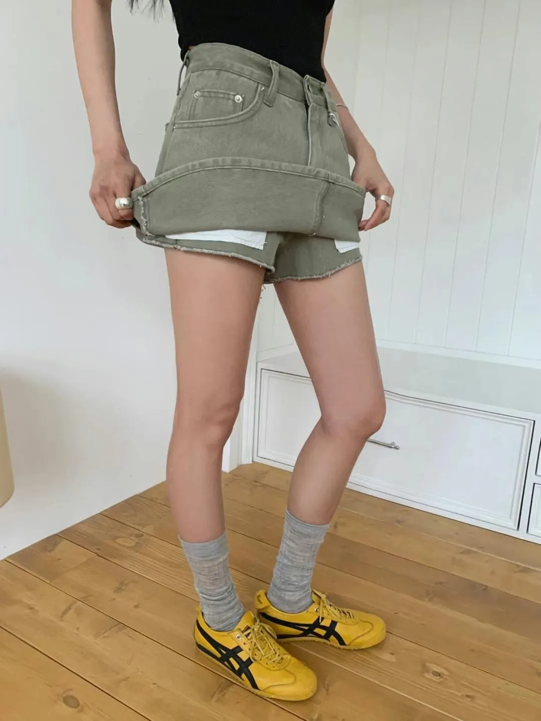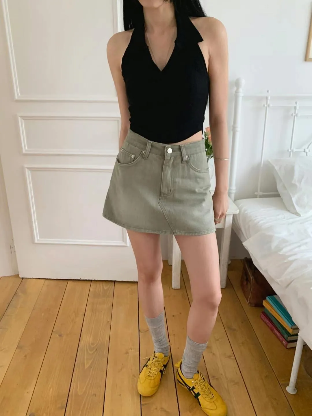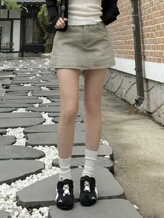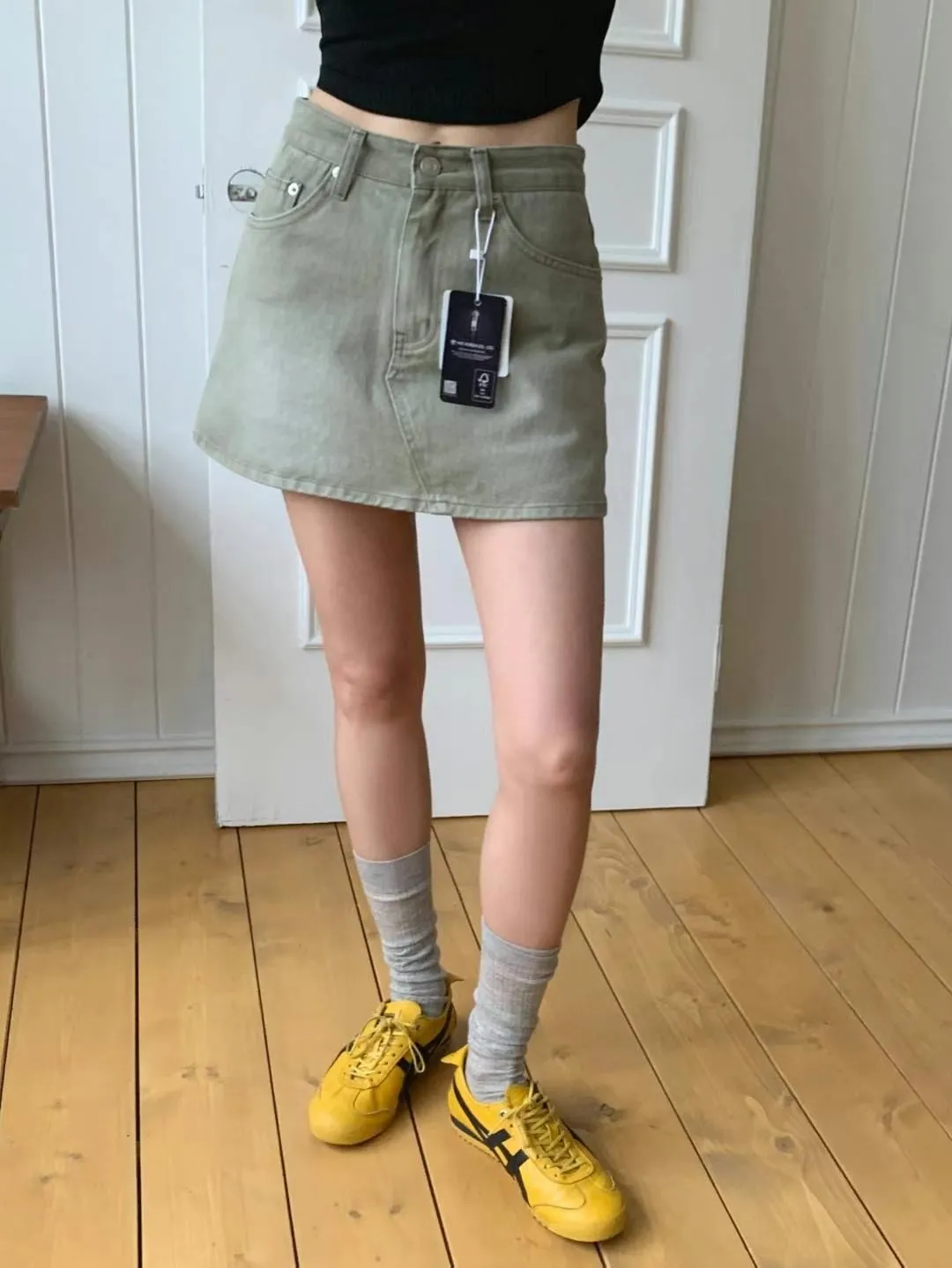💙𝑩𝒍𝒖𝒆.𝒌𝒓 🇰🇷正韓 刷色灰牛仔短裙 短裙 褲裙 牛仔裙
