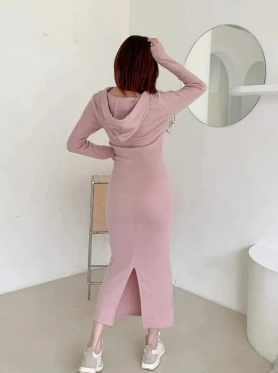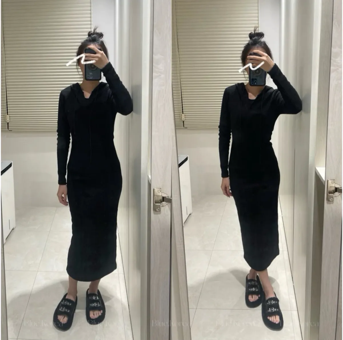 💙𝑩𝒍𝒖𝒆.𝒌𝒓 🇰🇷正韓 連帽後開岔貼身長洋 續