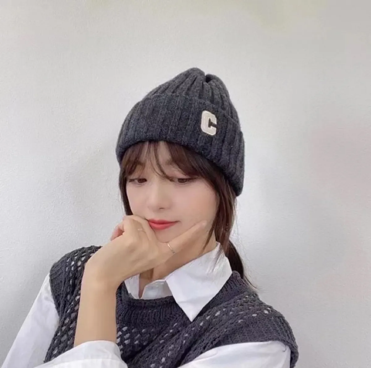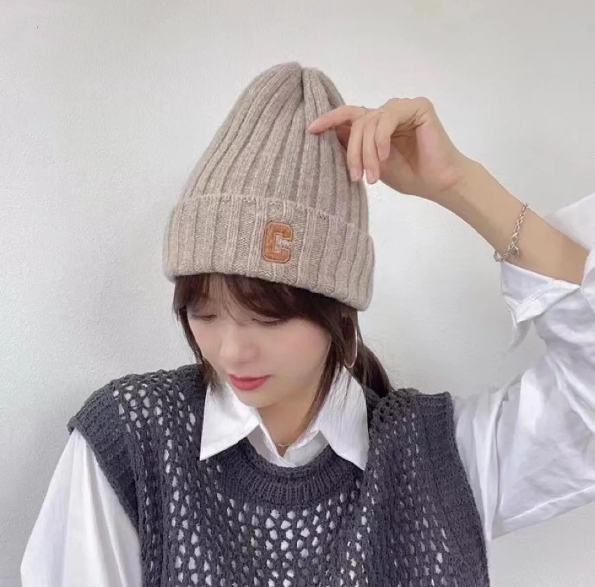 🌟 C字邊緣刺繡,字母裡面小卷毛設計❗️❗️邊緣有毛料凸起為正常