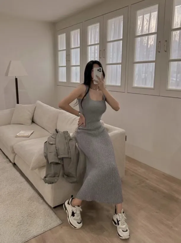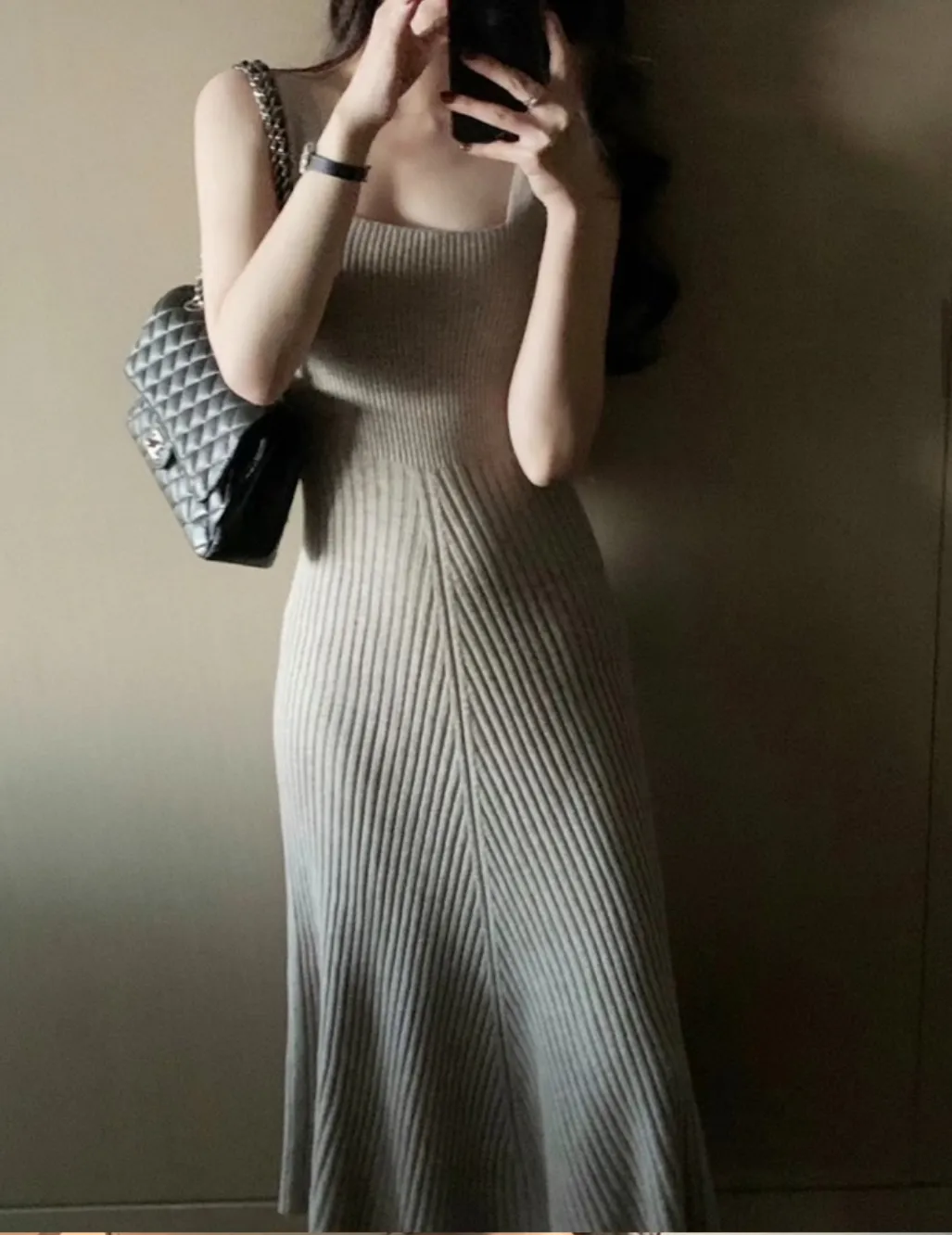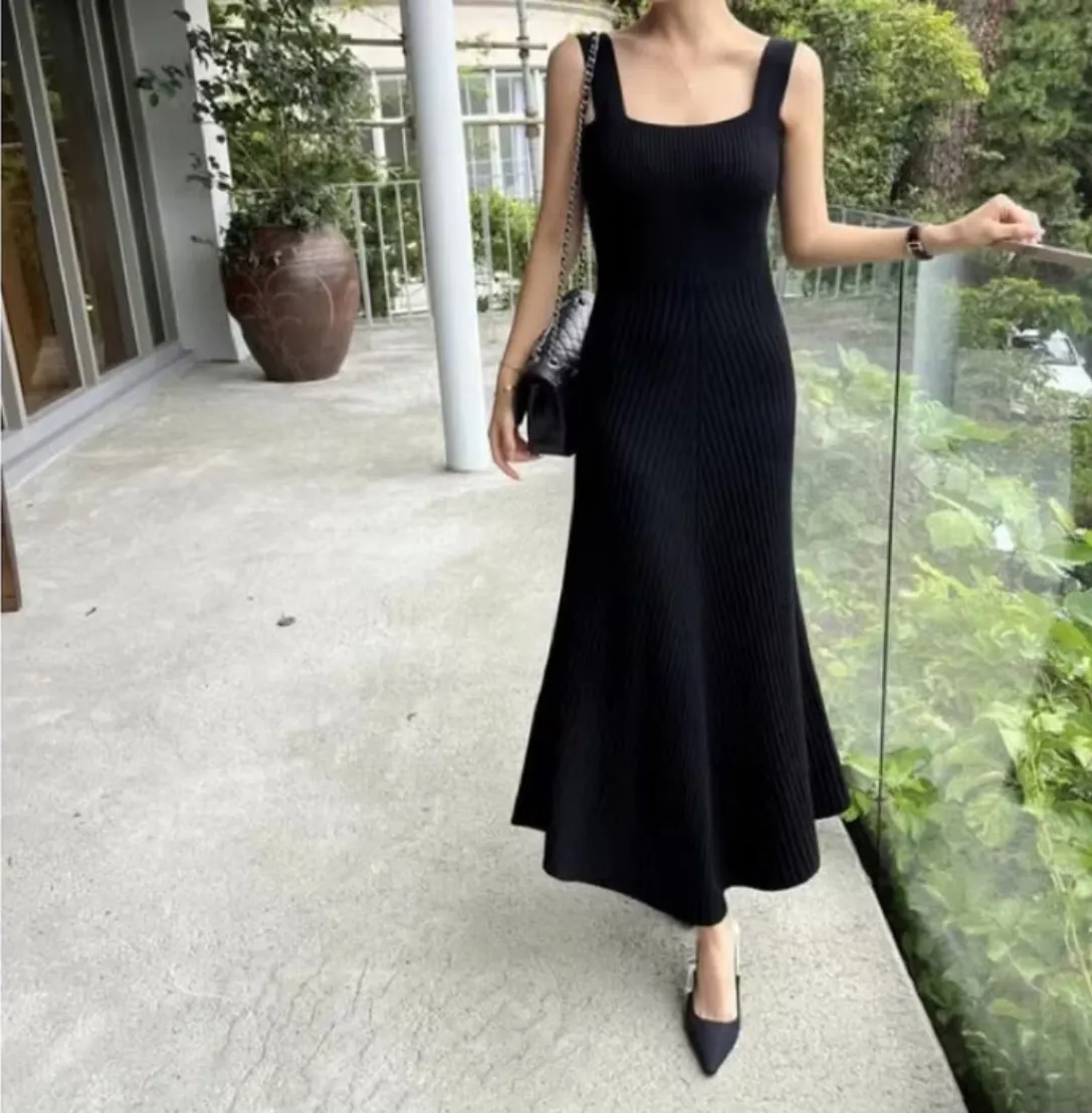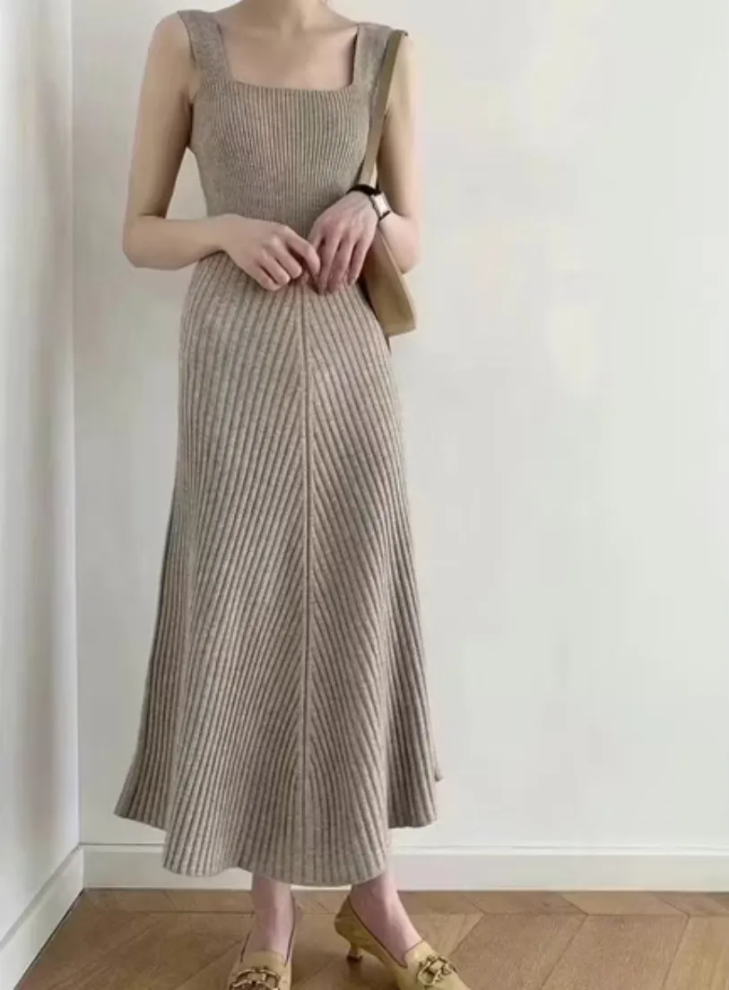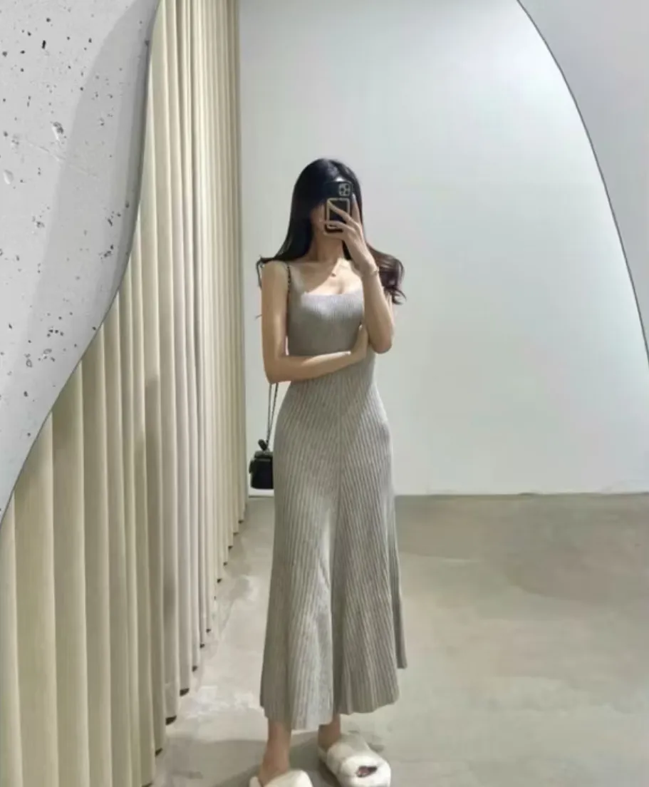 💙𝑩𝒍𝒖𝒆.𝒌𝒓 🇰🇷正韓 溫柔寬肩帶針織長洋 婚禮穿搭 ops