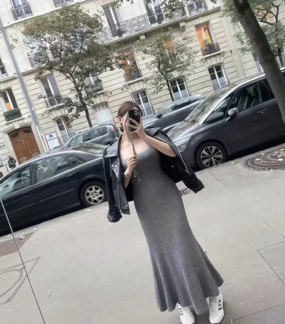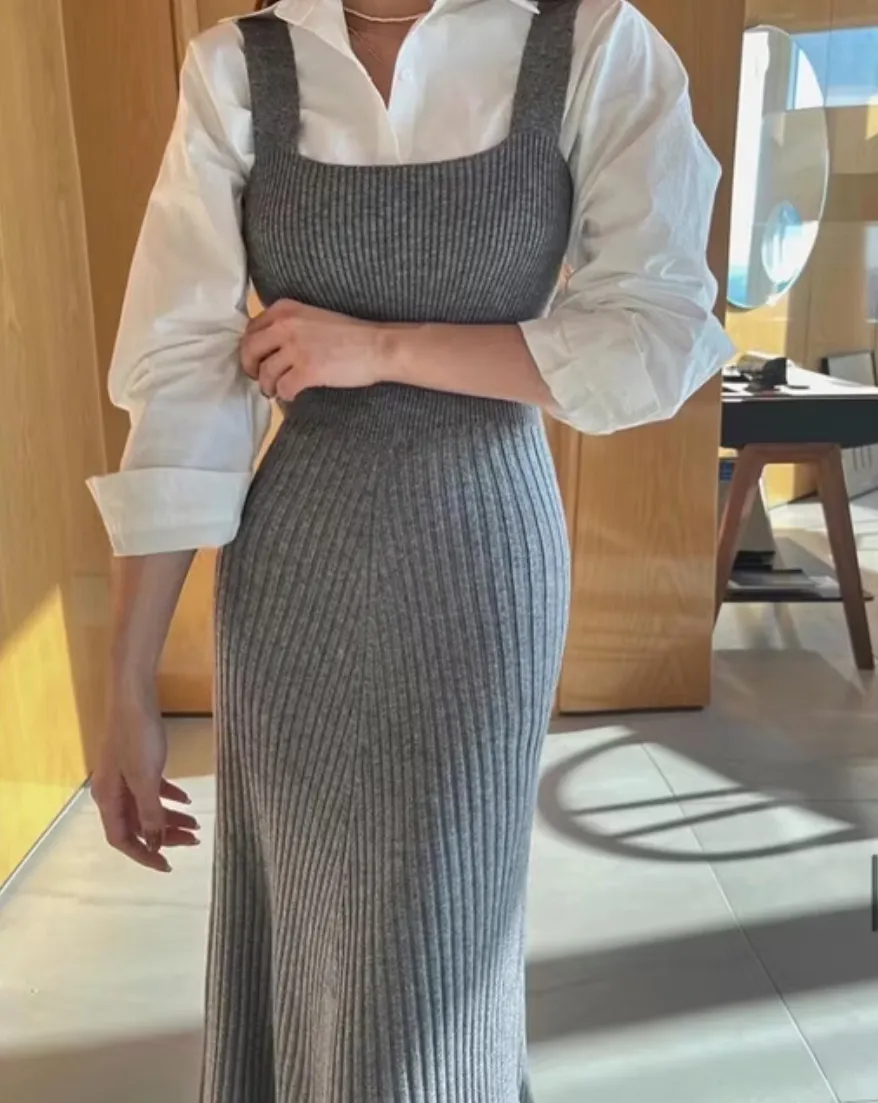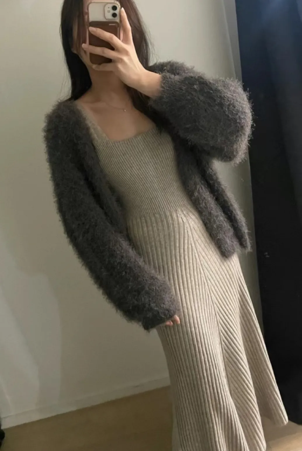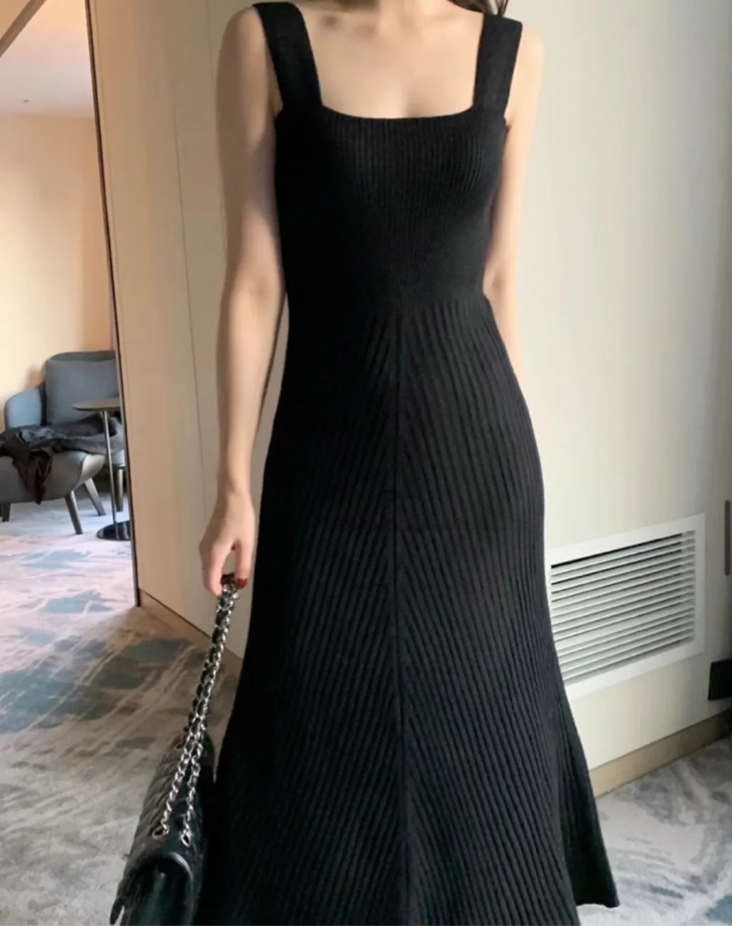 💙𝑩𝒍𝒖𝒆.𝒌𝒓 🇰🇷正韓 溫柔寬肩帶針織長洋 婚禮穿搭 ops