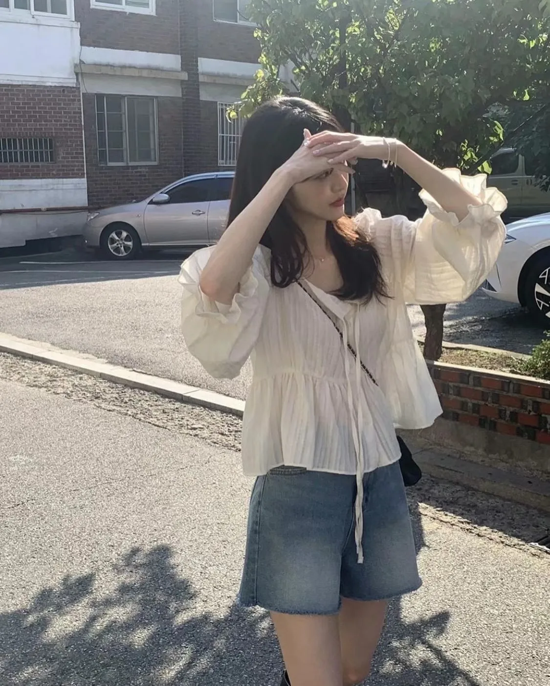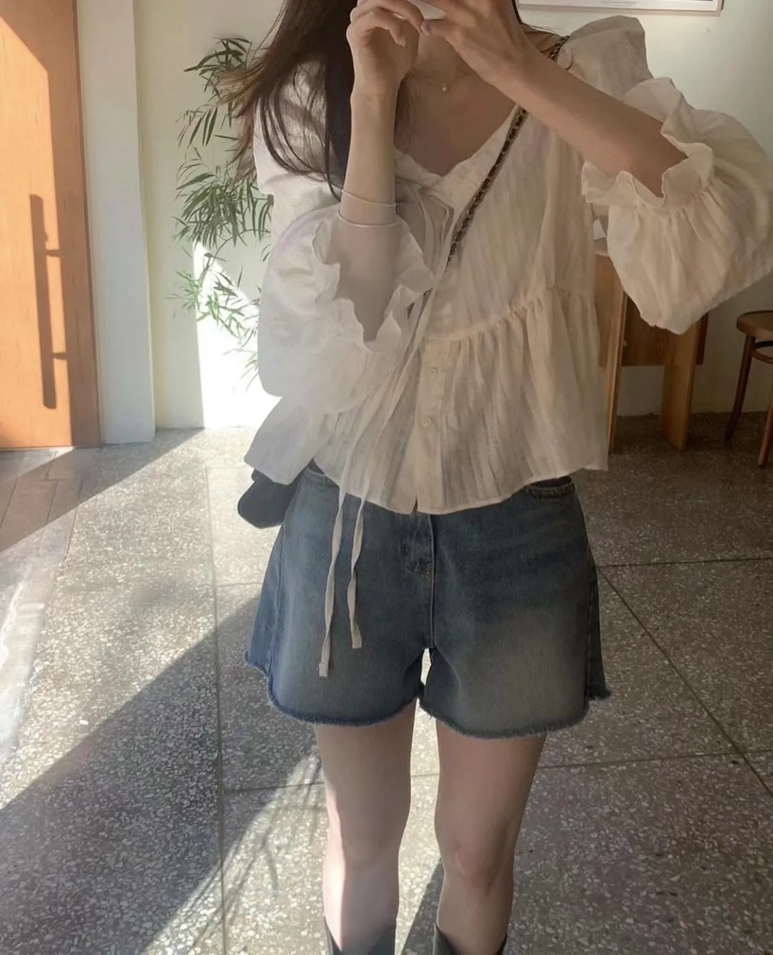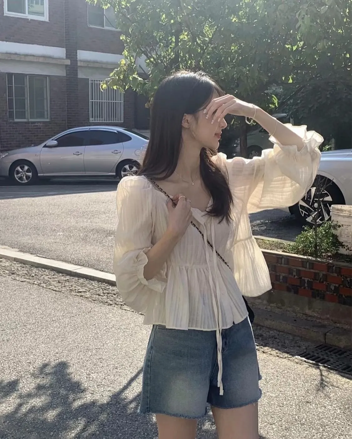 💙𝑩𝒍𝒖𝒆.𝒌𝒓 🇰🇷正韓 溫柔縮腰紋理上衣