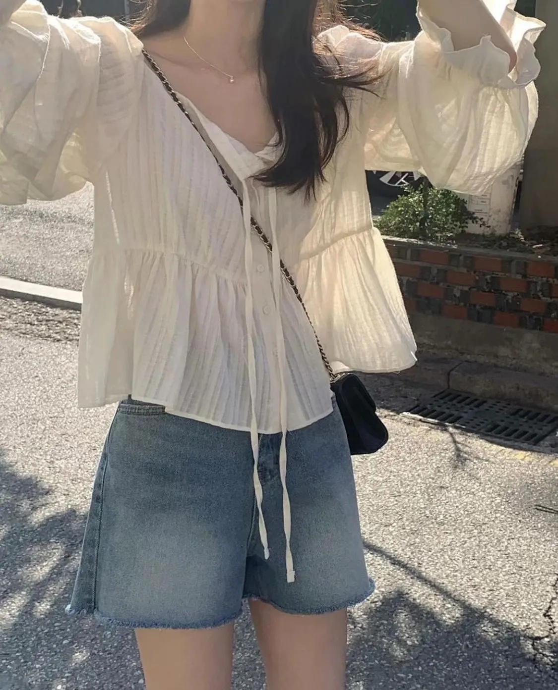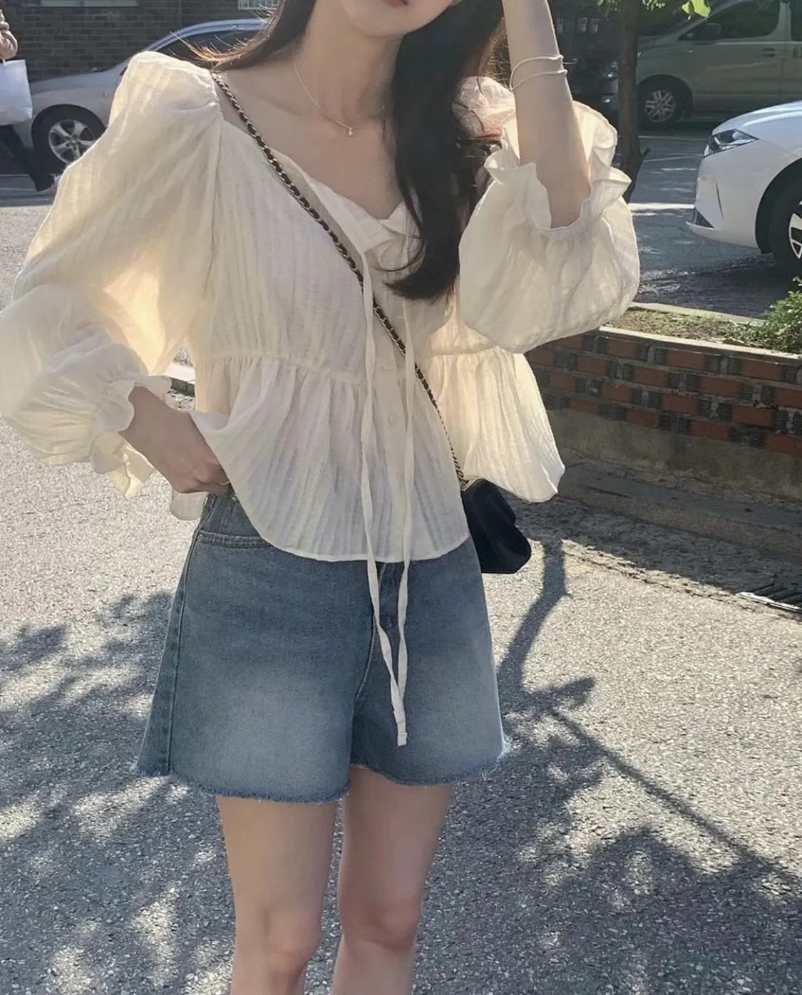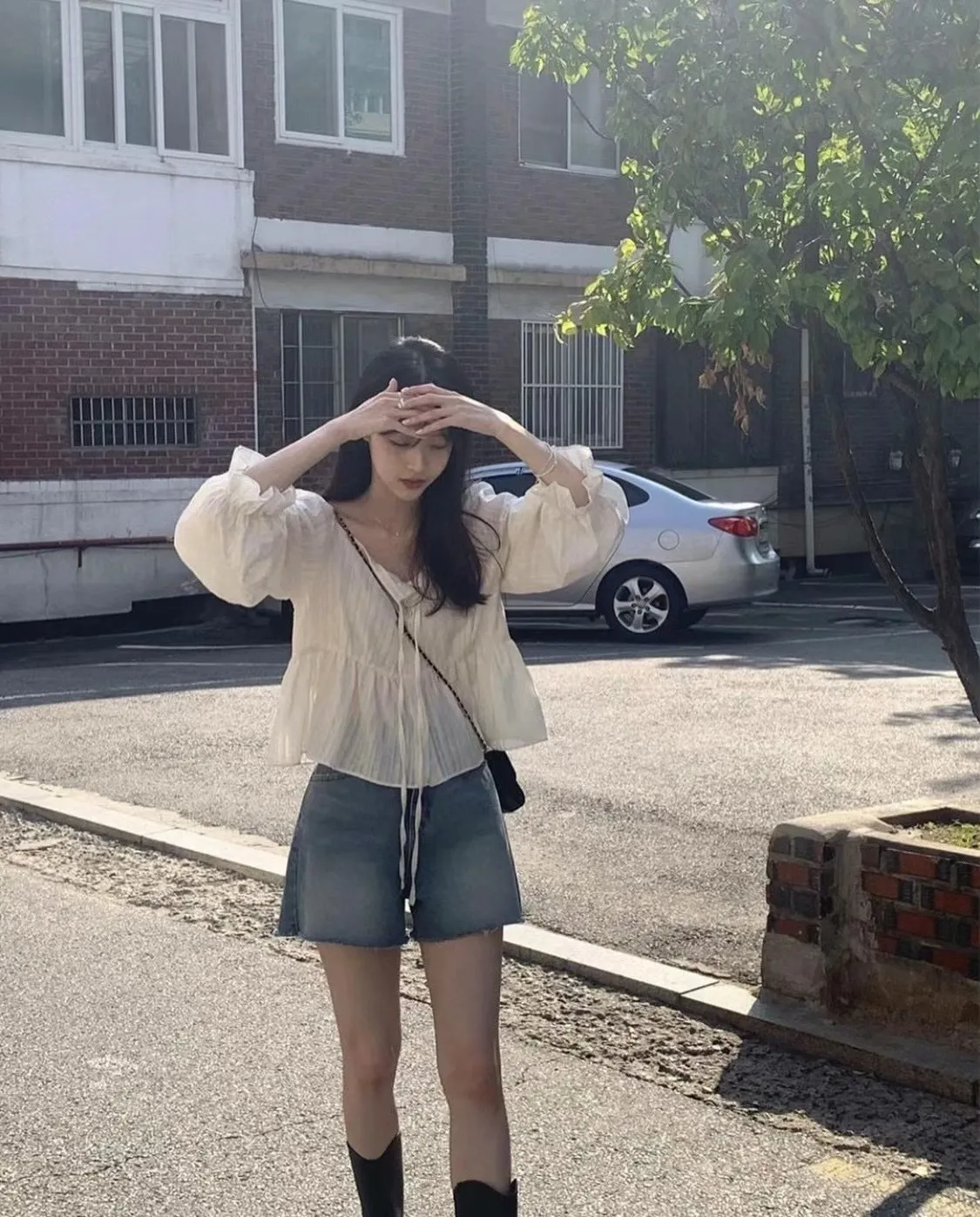 💙𝑩𝒍𝒖𝒆.𝒌𝒓 🇰🇷正韓 溫柔縮腰紋理上衣